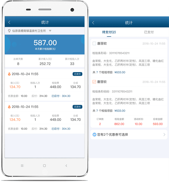 智能辅助开单功能;一键预约业务功能;便捷支付功能;订 单报告实时查询功能;检验结果异常解毒功能;诊所销量统 计功能;就诊患者信息管理功能等。